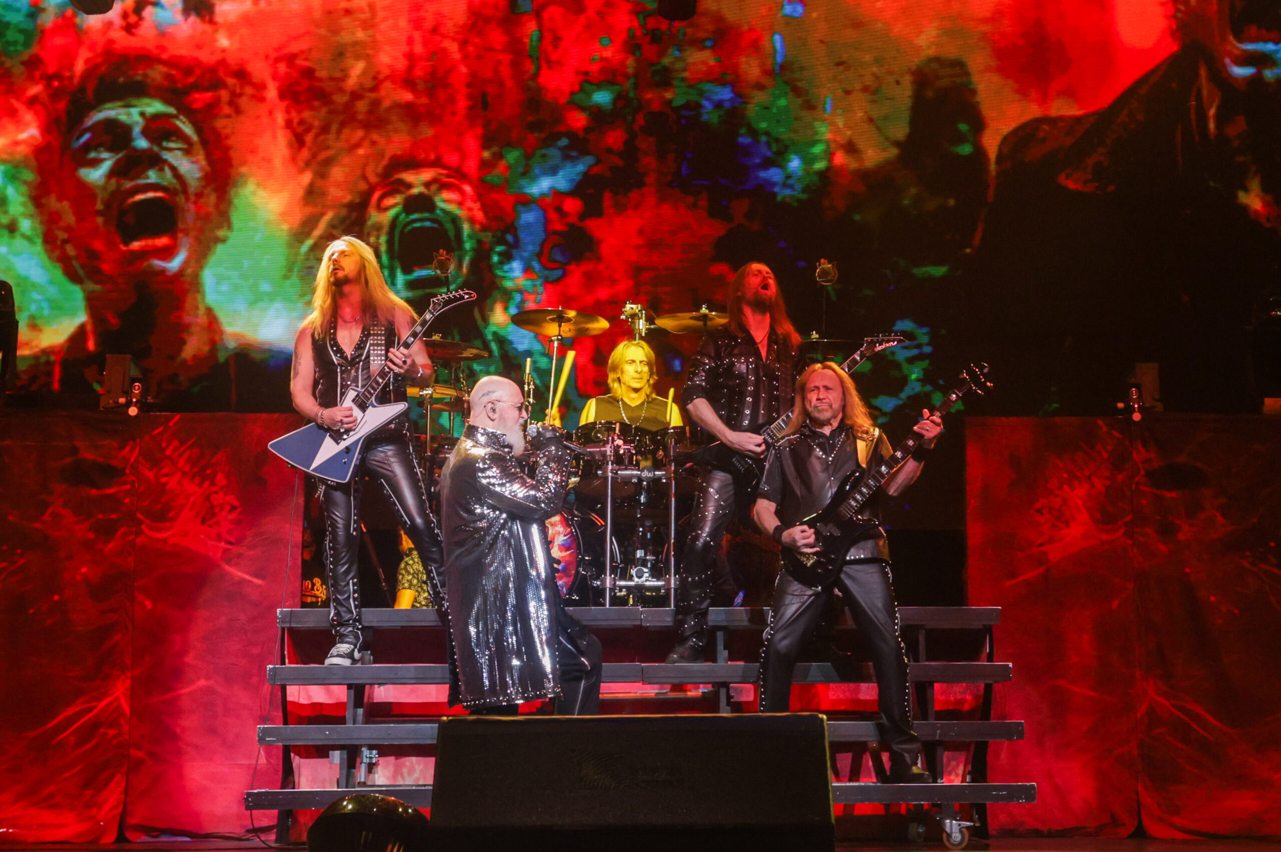 “Panic Attack” abre a apresentação, e a escolha é perfeita já que sua velocidade e força fazem a galera começar a pular e a cantar junto, sobretudo o refrão. Sem o menor espaço para respirar, já soltam o primeiro clássico, “You’ve Got Another Thing Comin’” e o público delira. O bombardeio continua incessante com “Rapid Fire” e o classicaço “Breaking The Law”: a casa toda indo completamente ao delírio, cantando, mexendo os braços e chacoalhando a cabeça, e assim que soa a última nota, Richie Faulkner já engata os primeiros acordes da extraordinária “Riding On The Wind”, uma música que exige de Rob Halford aqueles tons agudos e duradouros.