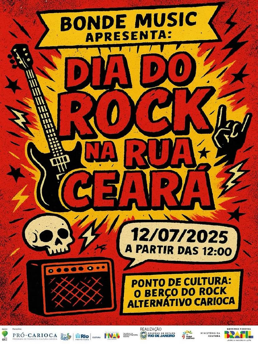 No dia 12 de julho de 2025 (sábado), a partir das 12h, a Rua Ceará, na Praça da Bandeira (RJ), receberá uma grande celebração cultural e musical com a realização do Dia do Rock na Rua Ceará. O evento gratuito integra as ações do projeto O Berço do Rock Alternativo Carioca, recém-reconhecido como Ponto de Cultura pela Rede Cultura Viva, do Ministério da Cultura.