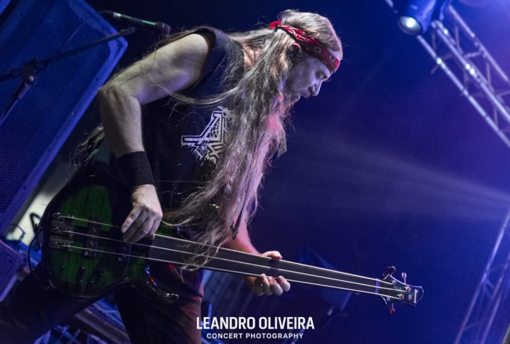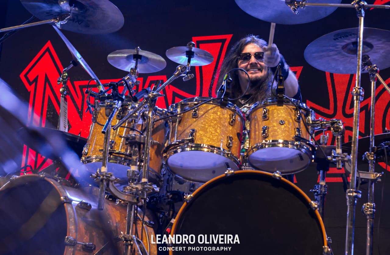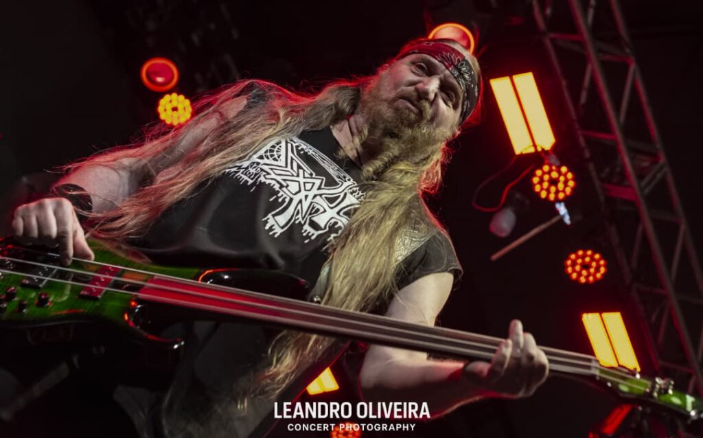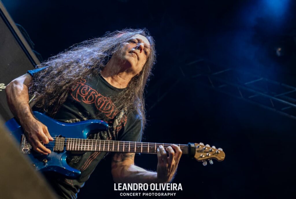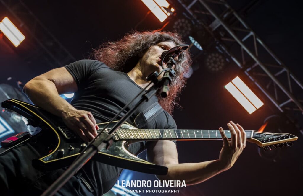 Quem estava bem à vontade era DiGiorgio: descalço e “brincando” de tocar baixo, ele foi muito comunicativo com a plateia o show todo. Hoglan também levava tudo como se fosse fácil alternar tantos tempos diferentes, sempre tranquilo (exceto pela luz acesa na cara dele, pediu algumas vezes e como não foi atendido pela mesa, deu uma baquetada no holofote, capaz da baqueta estar presa ali até agora). Já o baixinho Koelble interagiu mais com o pessoal da grade enquanto debulhava as seis cordas.
