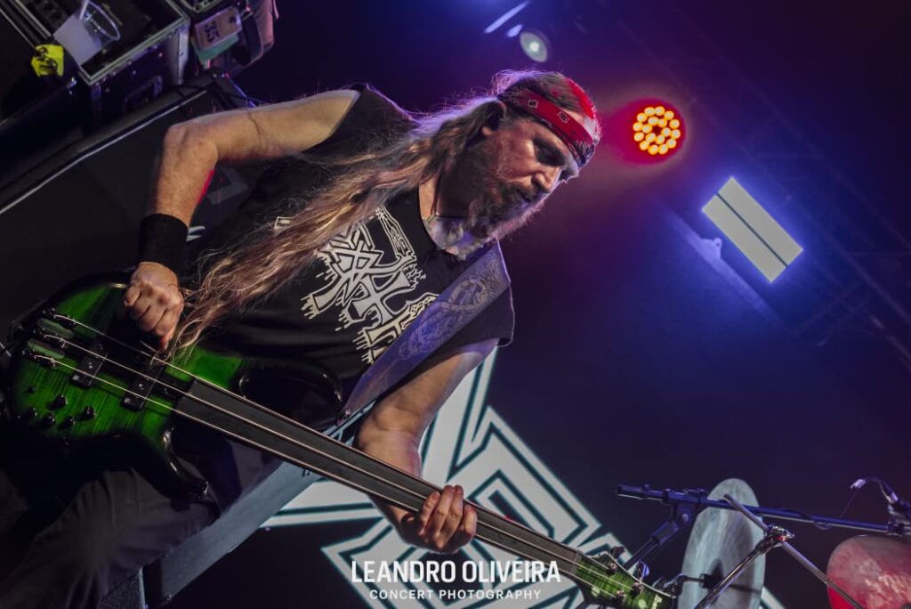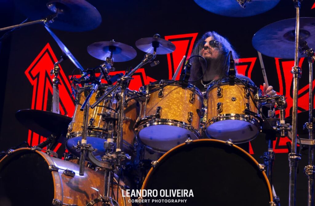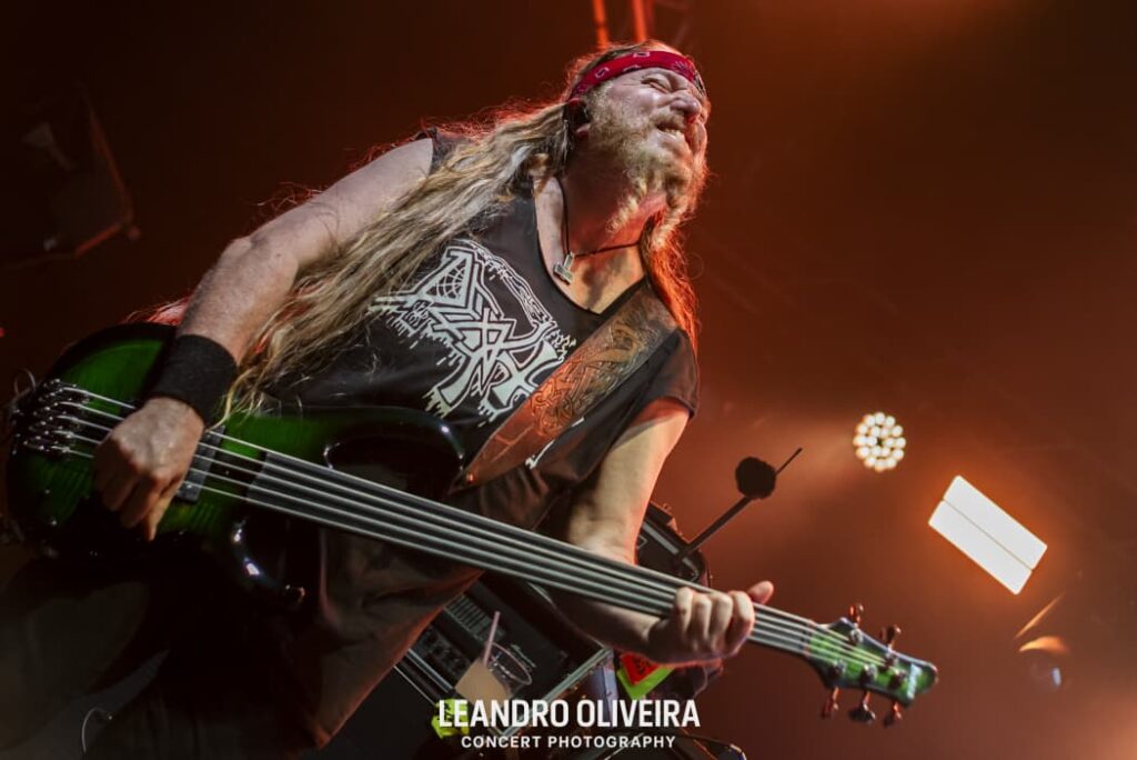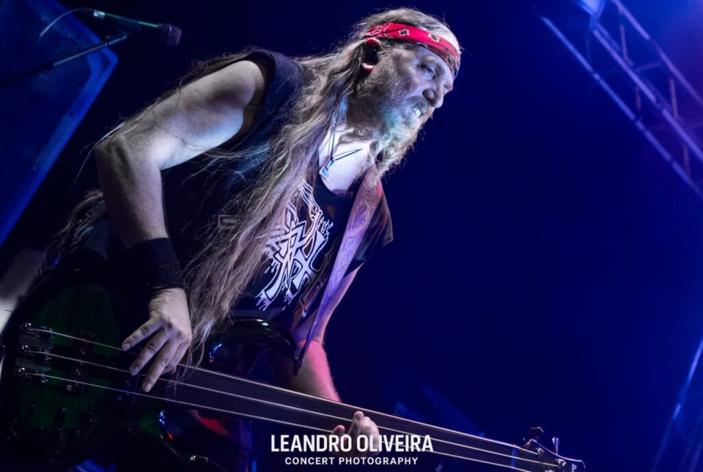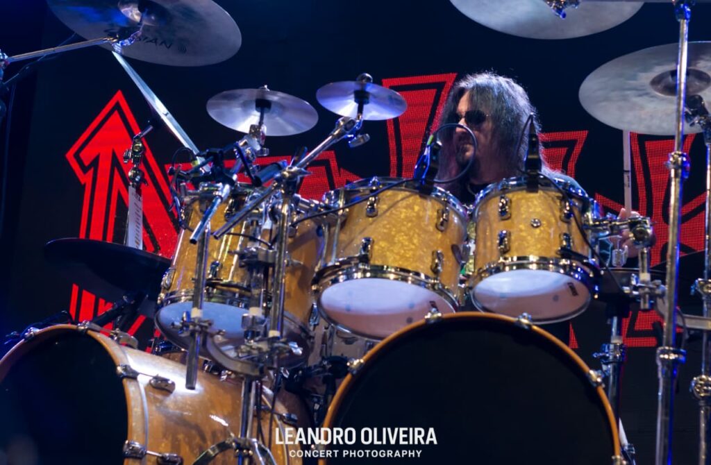 Quem estava bem à vontade era DiGiorgio: descalço e “brincando” de tocar baixo, ele foi muito comunicativo com a plateia o show todo. Hoglan também levava tudo como se fosse fácil alternar tantos tempos diferentes, sempre tranquilo (exceto pela luz acesa na cara dele, pediu algumas vezes e como não foi atendido pela mesa, deu uma baquetada no holofote, capaz da baqueta estar presa ali até agora). Já o baixinho Koelble interagiu mais com o pessoal da grade enquanto debulhava as seis cordas.
