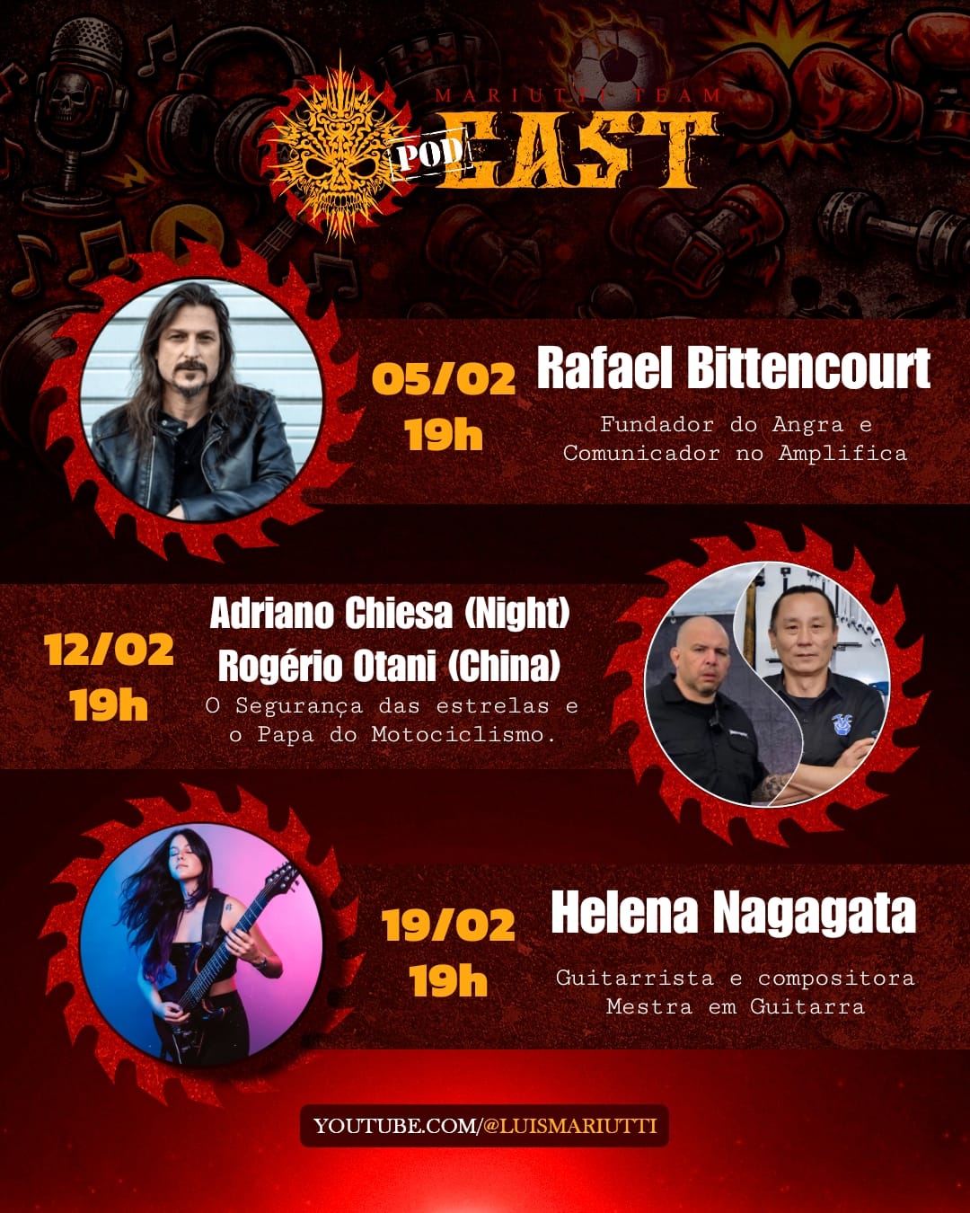 A estreia com Rafael Bittencourt marca simbolicamente o início do podcast, reunindo dois personagens fundamentais da história recente do metal nacional. O Mariutti Team Podcast será exibido no canal oficial de Luis Mariutti no YouTube, com novos episódios sempre às quintas-feiras, às 19h.