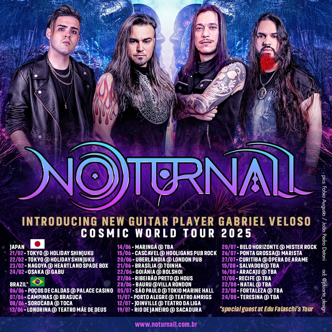 Dando sequência a sua grandiosa turnê mundial, com mais de 150 datas já realizadas na Europa, Oceania, América do Sul, América do Norte e América Central, o Noturnall, um dos maiores nomes do Heavy Metal brasileiro na atualidade, acaba de adicionar mais um continente à absolutamente bem sucedida “Cosmic World Tour”. Em fevereiro, a banda fará sua estreia no Japão com quatro shows nas cidades de Tóquio, Nagoia e Osaka. Essa será a primeira passagem do grupo pelo país, onde o vocalista e líder Thiago Bianchi já é amplamente reconhecido por seus trabalhos com as bandas Shaman e Karma.
