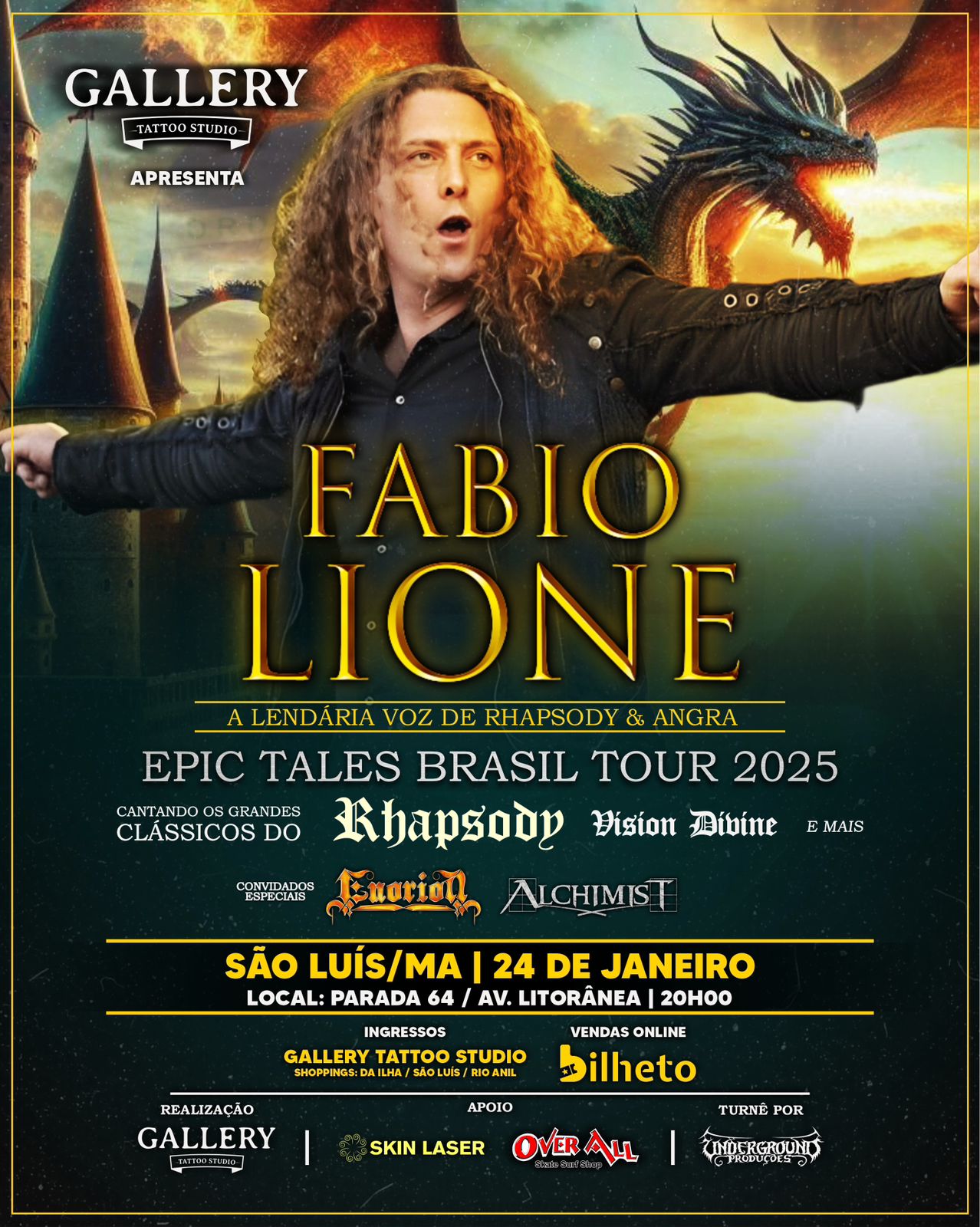 Nesta sexta dia 24, a banda tocará com o icônico vocalista italiano Fabio Lione e os brasileiros do Enorion na “Epic Tales Brasil Tour”, turnê onde o vocalista do Angra revive os maiores sucessos de sua antiga banda, o Rhapsody. O show ocorrerá na Parada 64, em São Luís/MA, na Avenida Litorânea, com início às 20h. Os ingressos estão disponíveis no Gallery Tattoo Studio (com unidades nos shoppings Da Ilha, São Luís e Rio Anil) e para compra online através do site Bilheto. O evento é realizado pelo Gallery Tattoo Studio, com apoio da Skin Laser, Overall Wear e Underground Produções.