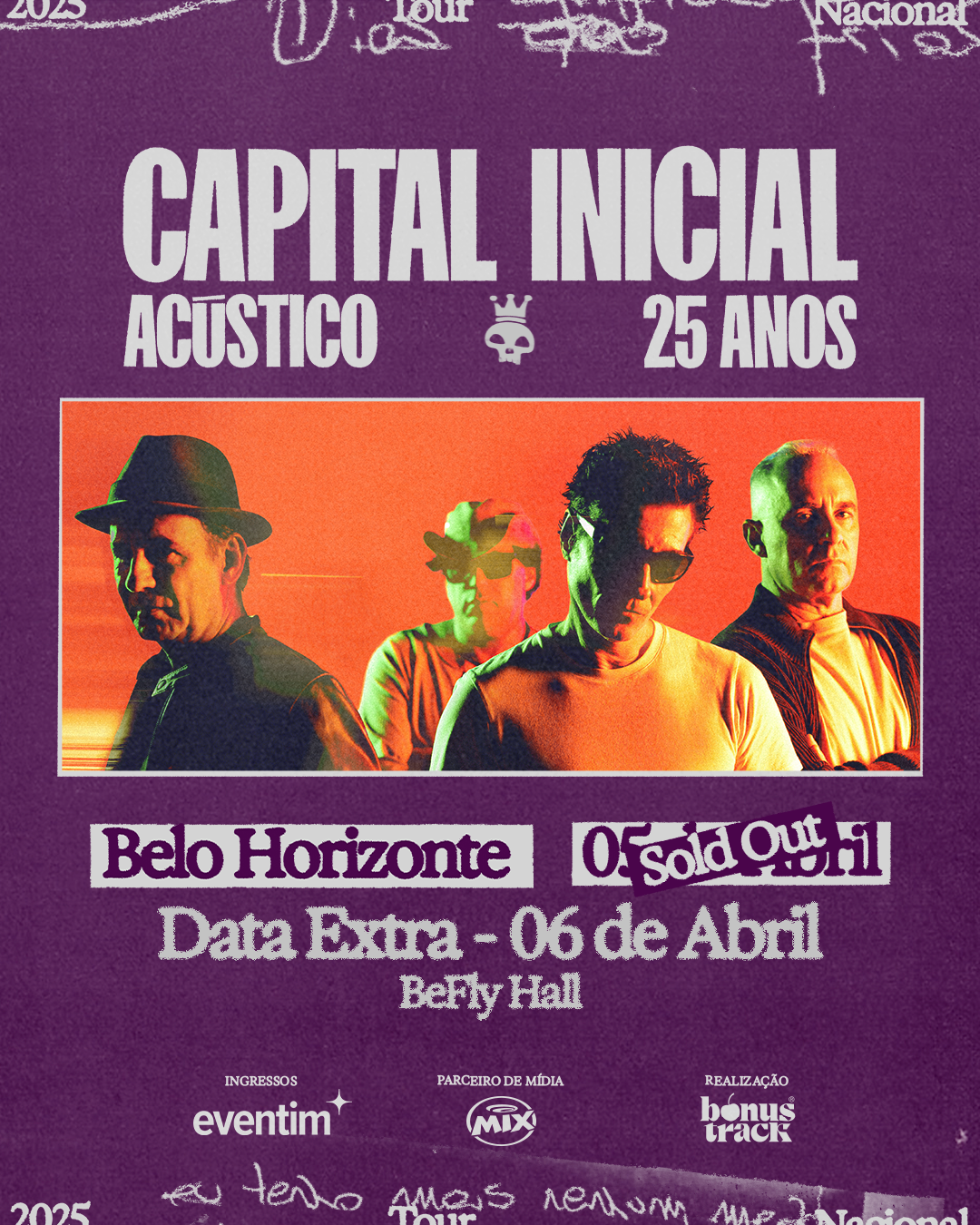 O Capital Inicial levará toda atmosfera do Acústico em mais um show em Belo Horizonte. Após esgotar a primeira data anunciada, o BeFly Hall receberá a banda em uma data extra: dia 06 de abril. A comemoração de 25 anos do emblemático show, passará por mais de 25 cidades, levando seus maiores sucessos. Ingressos já disponíveis!