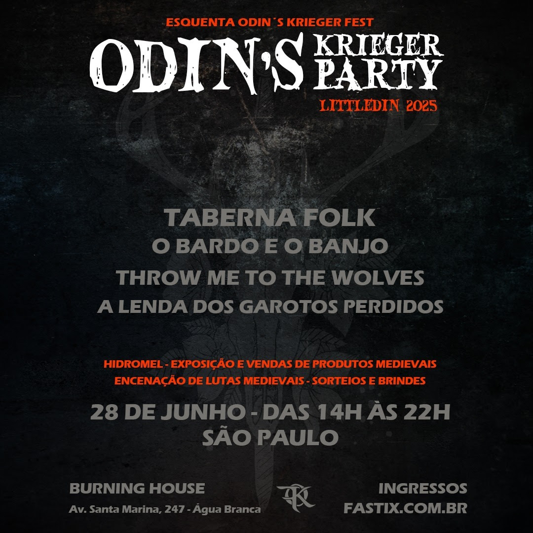 O tradicional evento de música folk e medieval do Brasil, o Odin’s Krieger Fest realizará no dia 28 de Junho em São Paulo/SP um ‘esquenta’ para a edição 2025. É o Odin’s Krieger Party – Littledin 2025, que traz quatro bandas em destaque no cenário nacional, como Taberna Folk e O Bardo e o Banjo, mais dois nomes que a cada dia conquistam mais público e atenção: Throw me to the Wolves e A Lenda Dos Garotos Perdidos.
