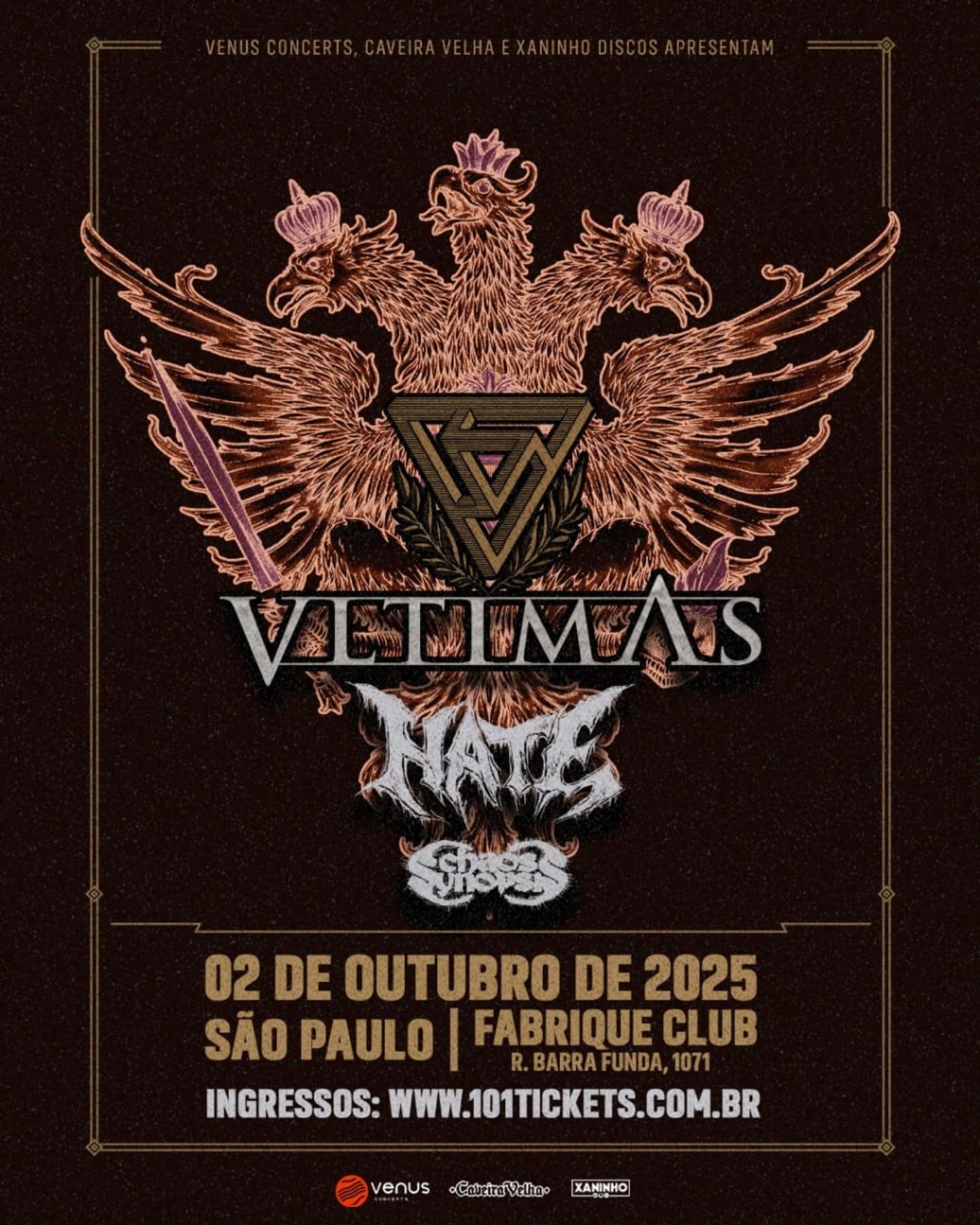 Pela primeira vez no Brasil, o supergrupo intercontinental Vltimas desembarcará por aqui em outubro, ao lado dos poloneses da banda Hate. O show acontecerá no dia 02 de outubro (quinta-feira). A banda brasileira Chaos Synopsis fará a abertura.