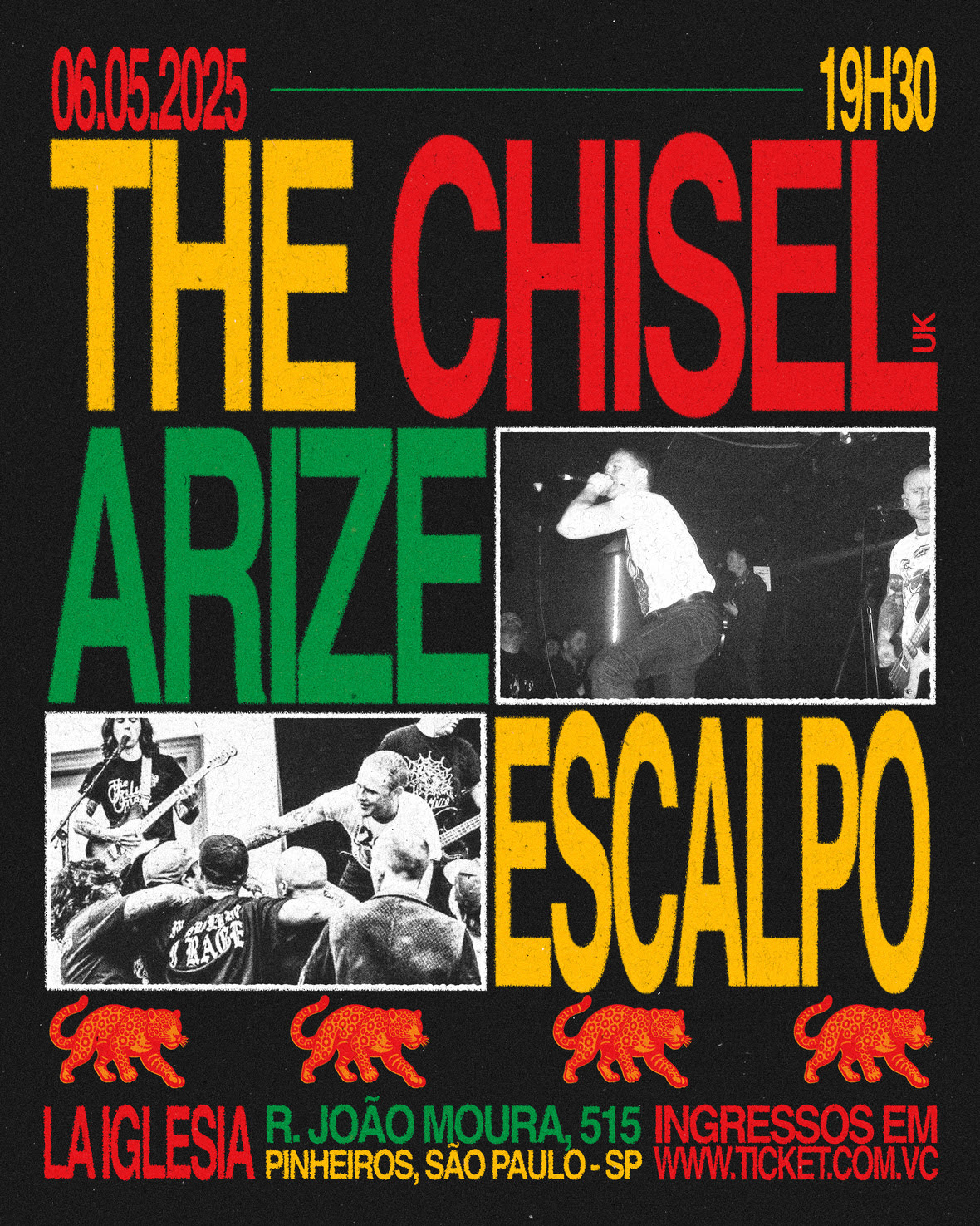 O outro show do The Chisel em São Paulo acontece dentro do Upfront Festival, dia 11/05, no Carioca Club. As demais bandas do fest são The Exploited, Fang (Reino Unido), Escalpo, Urutu e Punho de Mahin. Ingressos: www.clubedoingresso.com/evento/upfrontalfestival-theexploited .