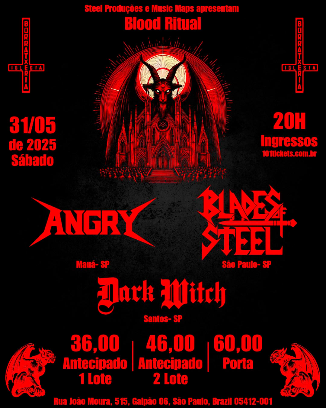 Ingressos: https://101tickets.com.br/events/details/Blood-Ritual—Angry,-Blades-of-Steel-e-Dark-Witch