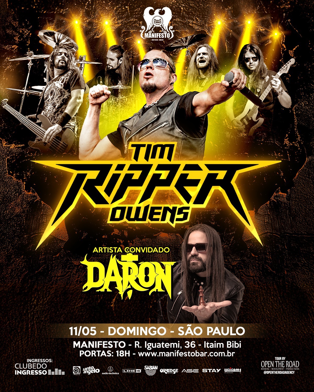 O vocalista americano Tim Ripper Owens fará uma nova e extensa turnê pela América do Sul cantando clássicos do repertório de sua carreira, que inclui passagens pelo Judas Priest, Iced Earth, Yngwie Malmsteen, Charred Walls of the Damned, Beyond Fear e Dio Disciples. O show em São Paulo será realizado no dia 11 de maio (domingo), a partir das 18h, no Manifesto Bar.