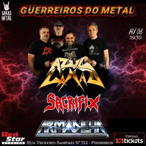 No próximo dia 14 de junho, sábado, a capital paulista será palco de uma verdadeira celebração ao Heavy Metal, Speed Metal e Thrash Metal com a realização do festival Guerreiros do Metal, no tradicional RedStar Studios, em Pinheiros. O evento reúne três forças do metal nacional: Azul Limão, Armadillha e Sacrifix.