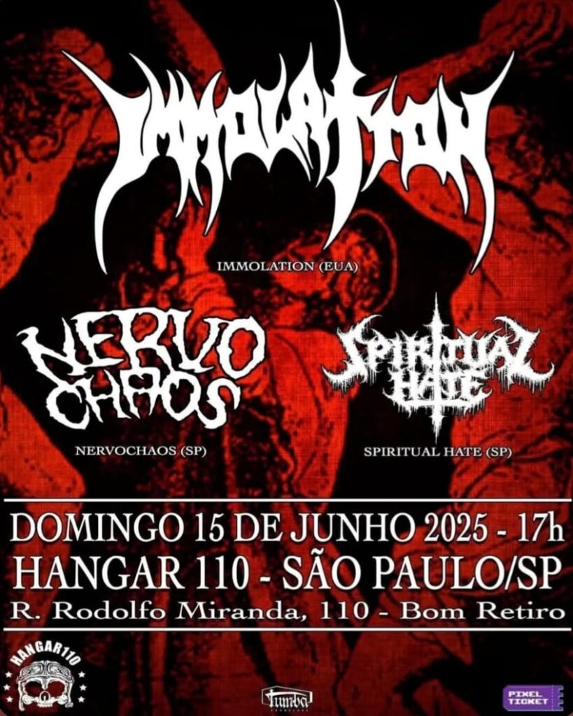 Ingressos: https://pixelticket.com.br/eventos/27102/immolation-nervochaos-spiritual-hate