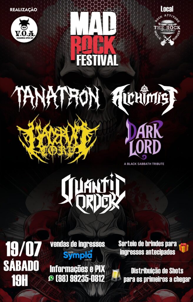 Já no dia 19 de julho, o Alchimist se apresenta no Mad Festival, no The Rock SLZ, evento que comemora os 16 anos da loja Mad Rock reunindo bandas da cena local como Quantic Order, Hacervo, Tanatron e Dark Lord. Este será o último show da banda em 2025, marcando o encerramento oficial de sua agenda ao vivo no ano. “Esse festival é muito simbólico para a gente. Encerrar essa fase no Mad Festival, ao lado de tantas bandas amigas, é uma forma de agradecer ao público e ao cenário que sempre nos apoiou. Agora é focar na produção do disco e dar o próximo passo na nossa trajetória”, afirma a banda.