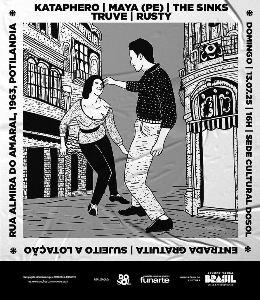 A banda potiguar Kataphero é uma das atrações do evento gratuito que acontece neste domingo, 13 de julho, a partir das 16h, na Sede Cultural DoSol, localizada na Rua Almira do Amaral, 1963, no bairro Potilândia, em Natal (RN). O evento faz parte da programação contínua do projeto DoSol em Movimento, realizado com apoio da Funarte e do Ministério da Cultura, e reunirá também as bandas Maya (PE), The Sinks, Truve e Rusty, em uma celebração da música alternativa e do underground nordestino.