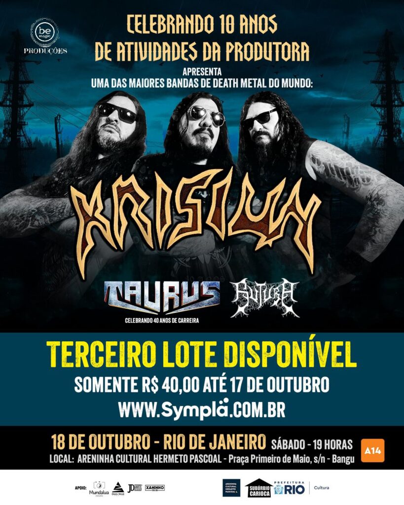 Ingressos – terceiro lote (até 17 de outubro) à venda em https://www.sympla.com.br/evento/krisiun/3002988