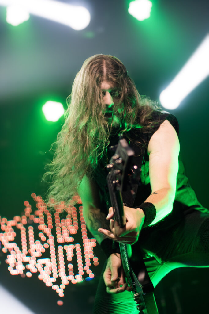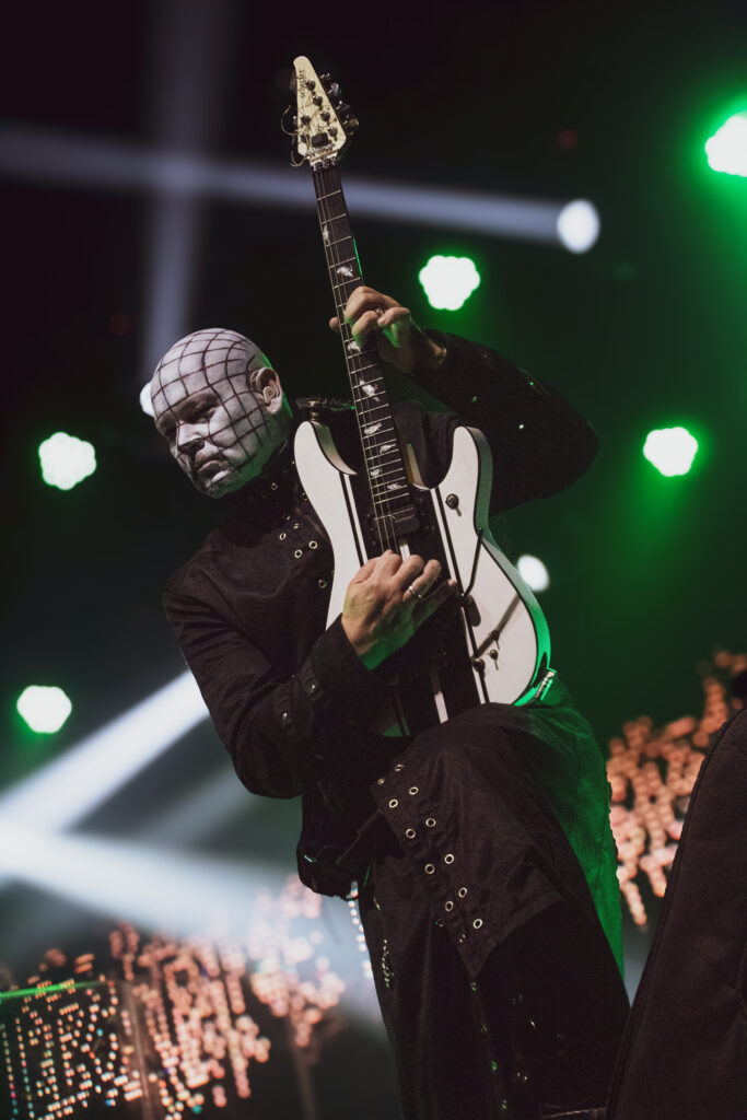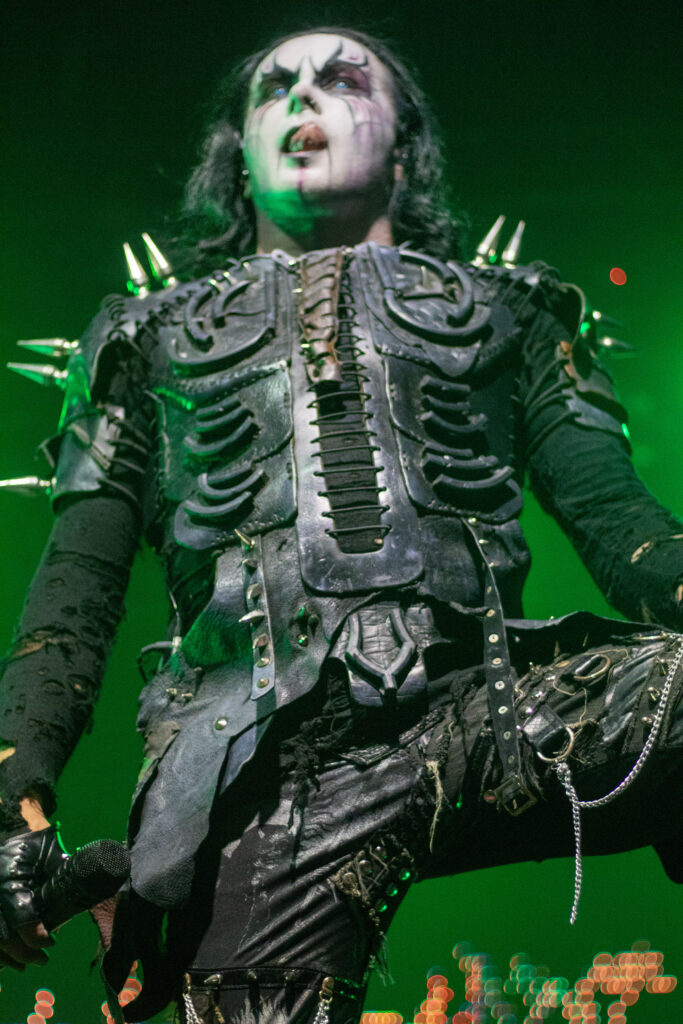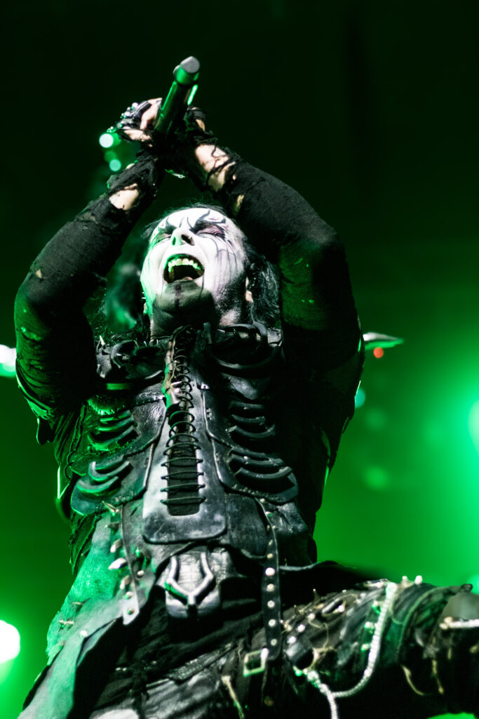 Quando o Cradle of Filth finalmente assumiu o palco às 19h20, o público já se encontrava em estado de euforia. A banda apresentou um setlist equilibrado, mesclando clássicos e músicas do novo álbum. A abertura com “To Live Deliciously” estabeleceu o tom da noite, seguida por destaques como “The Principle of Evil Made Flesh” e a icônica “Nymphetamine (Fix)”. O encerramento ficou por conta de performances arrebatadoras de “Her Ghost in the Fog” e “Death Magick for Adepts”.