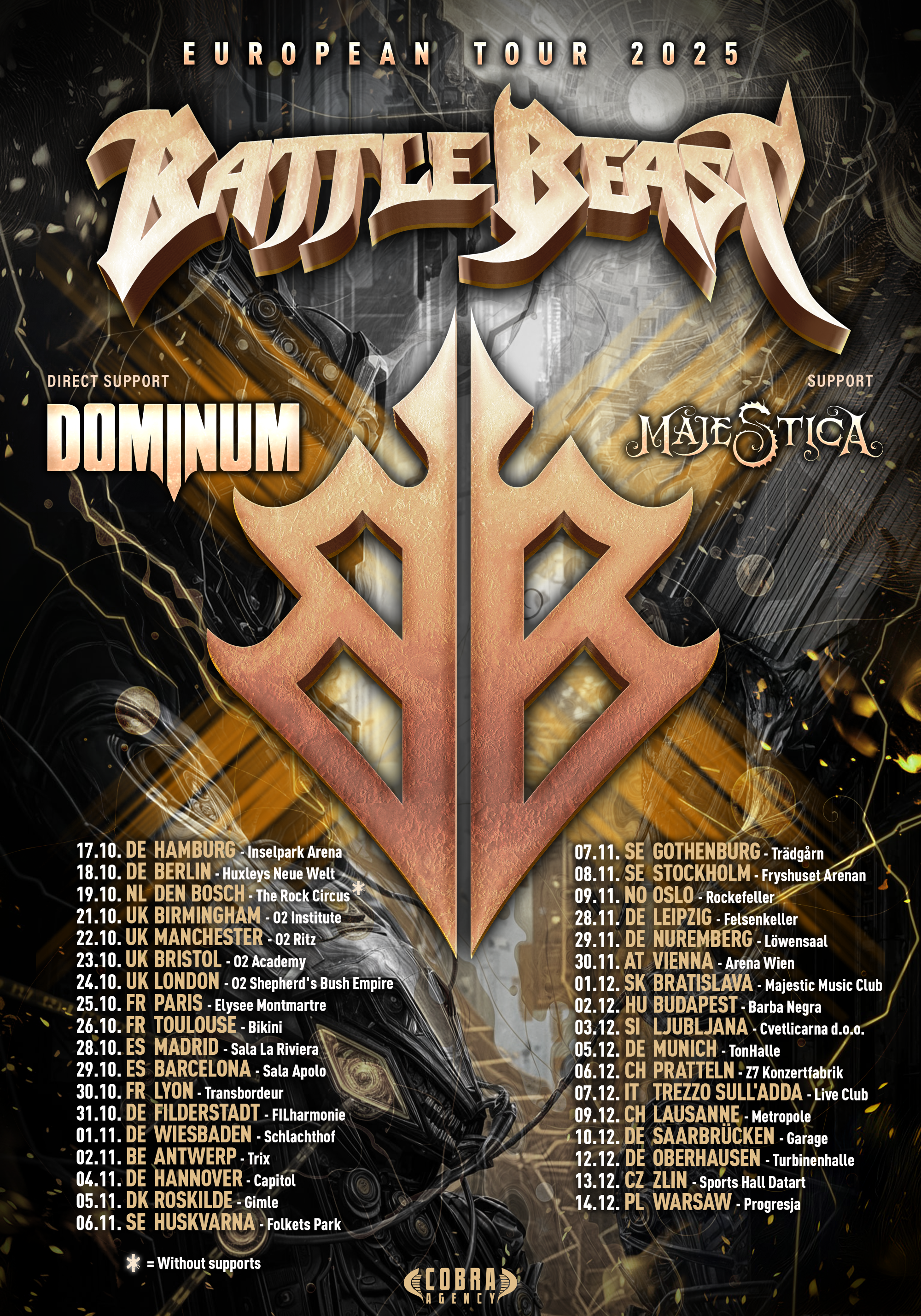 Para comemorar o lançamento do álbum, o BATTLE BEAST embarcará em uma grande turnê pela Europa, que chegará no dia 17 de outubro na Inselpark Arena , em Hamburgo — o maior show principal da banda na Alemanha até hoje. A turnê seguirá até meados de dezembro, com os DOMINUM como convidados especiais e a força do power metal sueco, MAJESTICA , como banda de abertura.