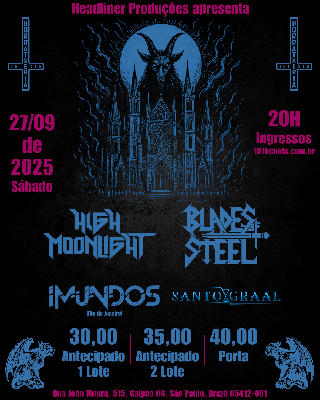 Com Yara Haag nos vocais, Mirella Caramelo na guitarra, Filippe Tonini no baixo e Jonas Soares na guitarra, a banda anuncia sua renovação com show de estreia que acontece no La Iglesia, no sábado, 27 de setembro. Blades of Steel se apresenta ao lado das bahndas High Moonlight, Imundos e Santo Graal. Ingressos à venda no site 101 Tickets.