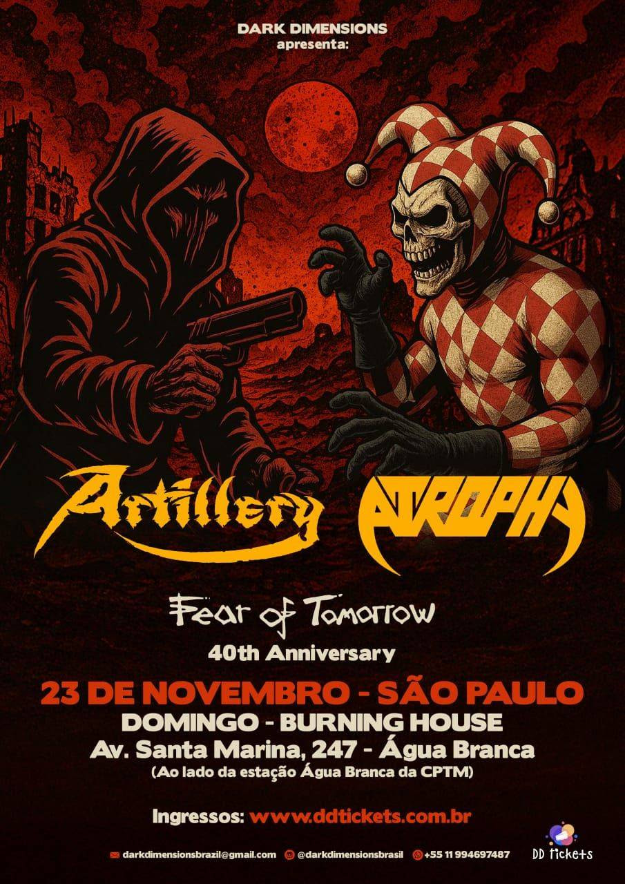 No próximo dia 23 de novembro, a Burning House, em São Paulo, será palco de um encontro histórico para os fãs de Thrash Metal. As lendárias bandas Artillery, da Dinamarca, e Atrophy, dos Estados Unidos, se apresentam juntas em uma noite que promete ser memorável, celebrando décadas de agressividade, técnica e resistência no gênero. O show é uma realização da produtora Dark Dimensions.