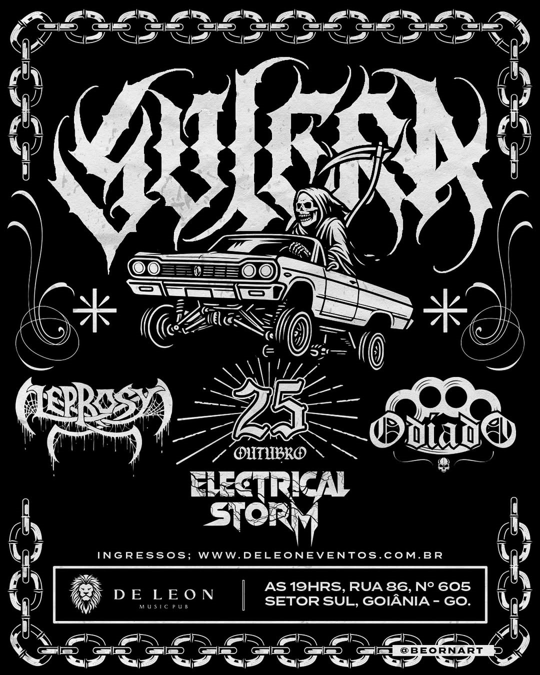 Completam o lineup, ao lado das duas bandas citadas, as potências locais Leprosy e Electrical Storm, prometendo uma das noites mais pesadas do segundo semestre na capital goiana. Confira abaixo o cartaz e o serviço completo para mais informações: