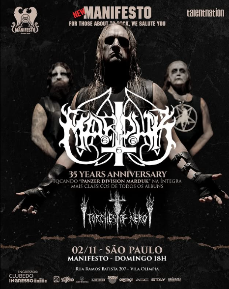 Para os fãs de black metal e metal extremo, este é um momento histórico assistir Marduk tocar um dos discos mais icônicos do gênero na íntegraa e, o espetáculo conta também com show da banda Torches of Nero, que fará a abertura do evento.