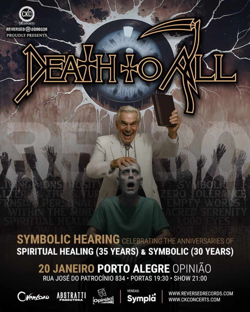 No dia 20 de janeiro, o Bar Opinião recebe a turnê “Symbolic Hearing”, projeto executado pelo Death To All (DTA), tributo oficial que reúne ex-integrantes da banda Death para celebrar o legado de Chuck Schuldiner. O evento, articulado localmente pela Abstratti Produtora em parceria com a Overload, marca a celebração dupla de dois registros fundamentais para a evolução do Death Metal: os 35 anos de “Spiritual Healing” e os 30 anos de “Symbolic”.