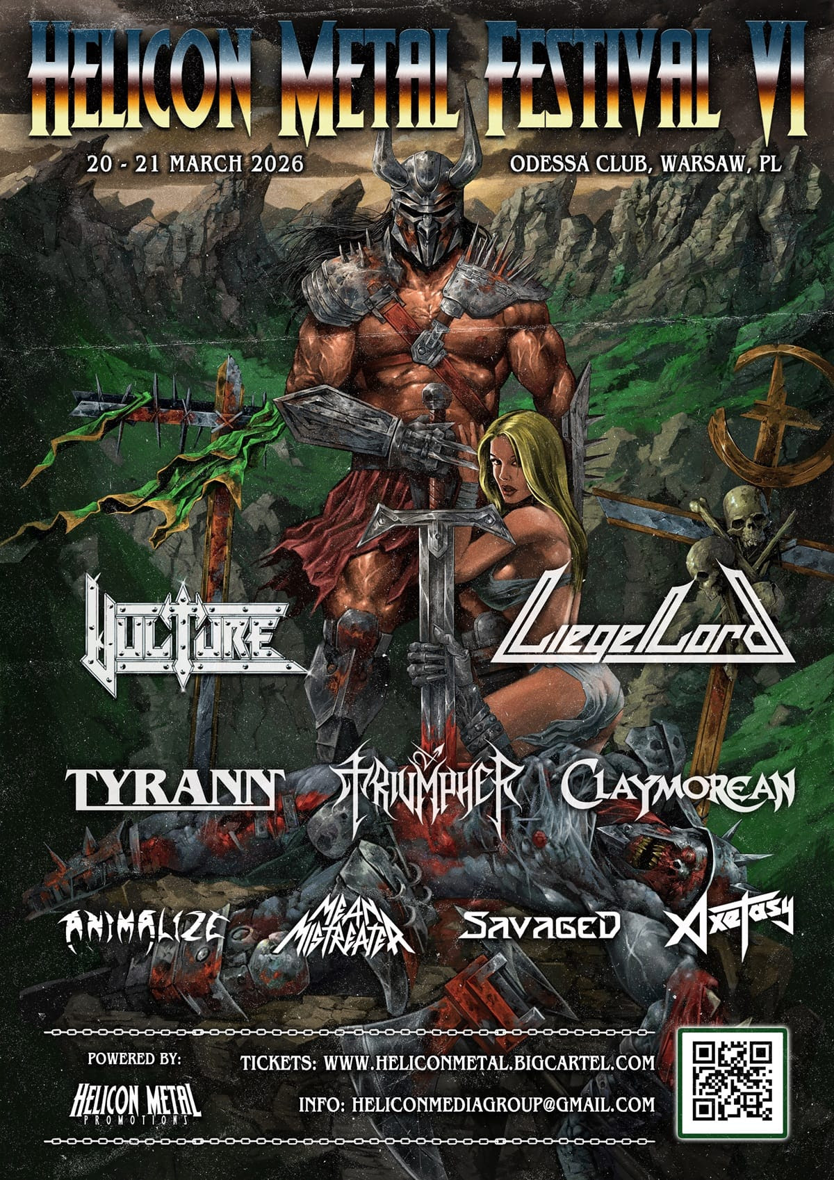 Os organizadores do Helicon Metal Festival revelaram oficialmente a programação completa da 6ª edição deste festival polonês único, dedicado exclusivamente às formas tradicionais do metal. O evento acontecerá nos dias 20 e 21 de março de 2026, no coração do país – Varsóvia, no Odessa Club.