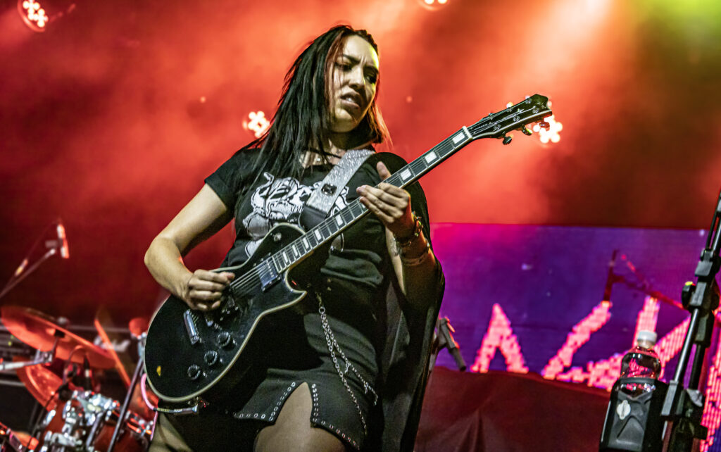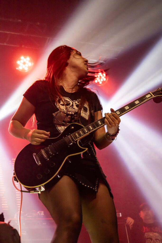 Representando a presença feminina na cena nacional, veio a Eskröta, substituindo o Surra, que recentemente anunciou uma pausa nas atividades. Com uma sonoridade que mistura crossover e thrash metal, o trio formado por Yasmin Amaral (vocal e guitarra), Tamyris “Thamy” Leopoldo (baixo) e Jhon França (bateria) apresentou um show energético. Elas mesclaram músicas do novo disco Blasfemia com faixas já conhecidas, como “Eticamente Questionável”, “Mulheres” e “Filha do Satanás” — esta última foi um dos pontos altos do repertório, com a participação especial de Hugo Golon, do Cemitério. O show ainda teve momentos de interação descontraída, como a distribuição de balões ao público; uma apresentação tão divertida quanto caótica.