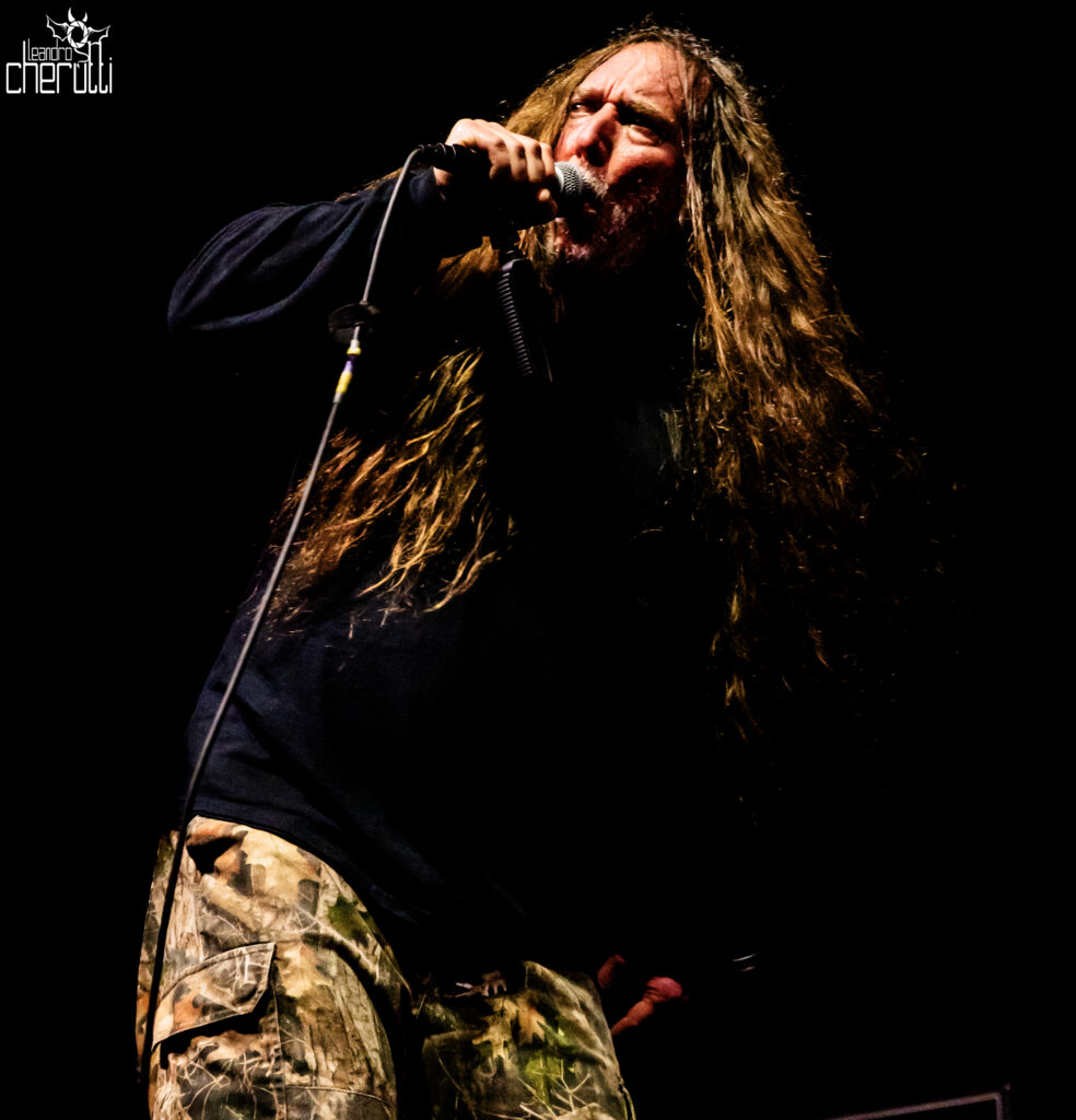 O momento mais aguardado da noite veio em seguida: a execução quase integral de Cause of Death, segundo álbum de estúdio do grupo e um dos registros mais brutais da história do death metal. Com faixas como “Infected”, “Dying”, “Chopped in Half” e “Turned Inside Out”, o quinteto da Flórida demonstrou por que permanece como referência absoluta do gênero — combinando riffs densos, passagens com influência thrash e a bateria marcada por levadas rápidas e precisas.