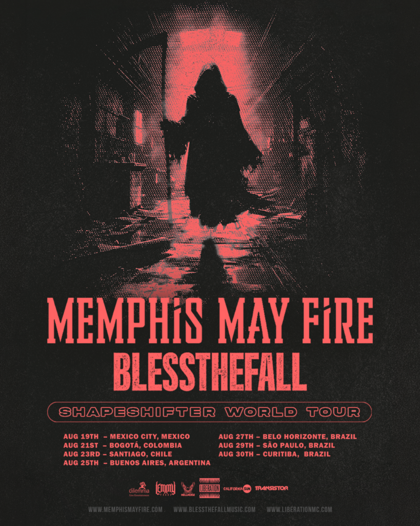 Memphis May Fire e Blessthefall, dois nomes de trajetórias consolidadas no metalcore e post-hardcore norte-americana, fazem três shows conjuntos no Brasil em agosto de 2026, em Belo Horizonte/MG (27/08, Mister Rock), São Paulo/SP (29/08, Carioca Club) e Curitiba/PR (30/08, Tork n’ Roll). A realização é da Liberation MC.
