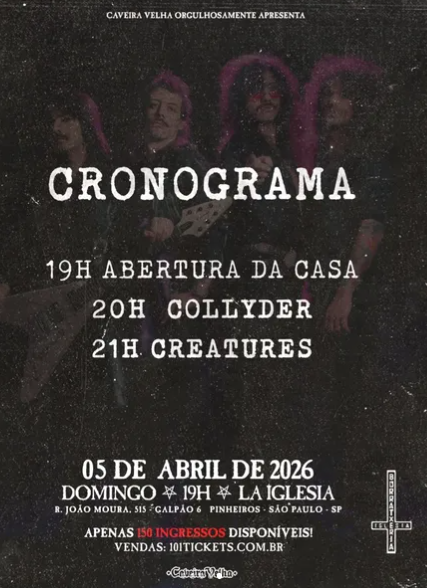 A cena underground de São Paulo recebe neste domingo (5 de abril) mais uma noite pesada com a apresentação da banda Creatures, que sobe ao palco da La Iglesia prometendo um show intenso e carregado de energia.