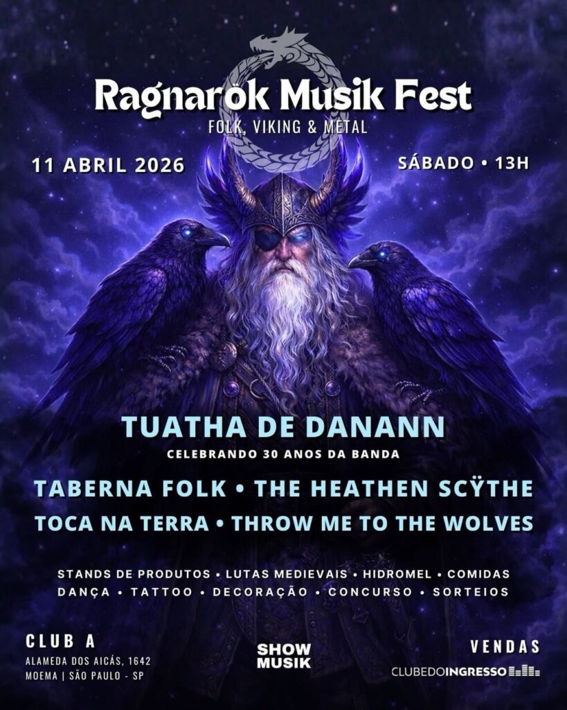 O Ragnarök Musik Fest 2026 será realizado no dia 11 de abril, no Club A, em São Paulo. O festival reúne bandas de metal e folk com temática medieval e nórdica, além de promover atividades paralelas como lutas medievais, venda de hidromel, feira temática e performances artísticas. A proposta é concentrar, em um único espaço, música pesada e manifestações ligadas ao imaginário histórico europeu.