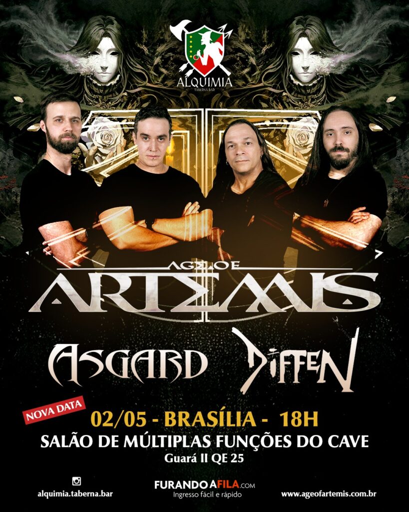A Age of Artemis está de volta aos palcos para estrear sua nova formação. No dia 02 de Maio, a banda se apresenta junto com Asgard e Diffen no Alquimia Taberna Bar, em Brasília-DF.