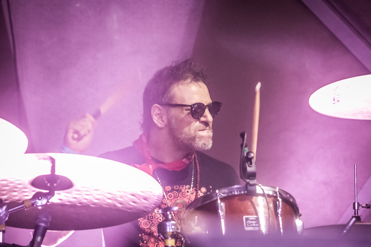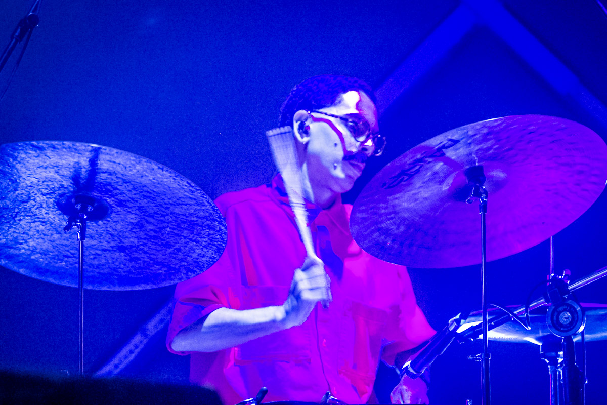 Diferentemente do que costuma ocorrer em muitas bandas, a bateria teve papel de protagonismo. Gabriel Azambuja foi peça central na dinâmica do show, não apenas sustentando o peso rítmico, mas também assumindo os vocais em “A Alegria Voltou” e “Velha Amiga”. Esse equilíbrio entre os integrantes evidencia a força coletiva da Cachorro Grande ao vivo: não há um único foco, mas sim um conjunto coeso em que cada músico encontra seu momento de destaque.