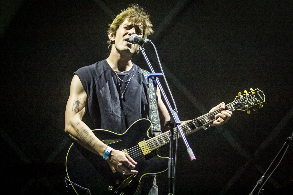 Chamava atenção a naturalidade com que os gaúchos conduziam o espetáculo. Beto Bruno, em especial, parecia completamente à vontade — como se estivesse na sala de casa — , circulando pelo palco com uma garrafa de vinho, dançando, se jogando no chão e interagindo com o público de forma espontânea. Já nos momentos finais, sua performance indicava um estado ainda mais solto, o que, longe de comprometer, reforçava o espírito caótico e autêntico do show. Marcelo Gross, por sua vez, exibiu grande domínio técnico, estendendo solos além das versões de estúdio para amplificar a energia ao vivo. Em vários momentos, aproximou-se da beira do palco, estreitando a conexão com o público, e também ganhou destaque ao assumir os vocais em “Dia Perfeito”.